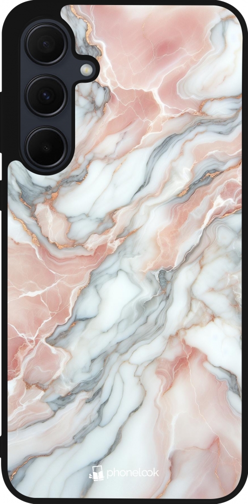 Coque Samsung Galaxy A56 - Silicone rigide noir Marbre Rose Lumineux
