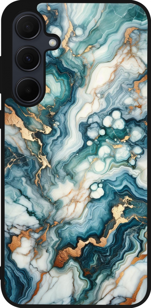 Coque Samsung Galaxy A56 - Silicone rigide noir Marbre Vert Bleu Doré