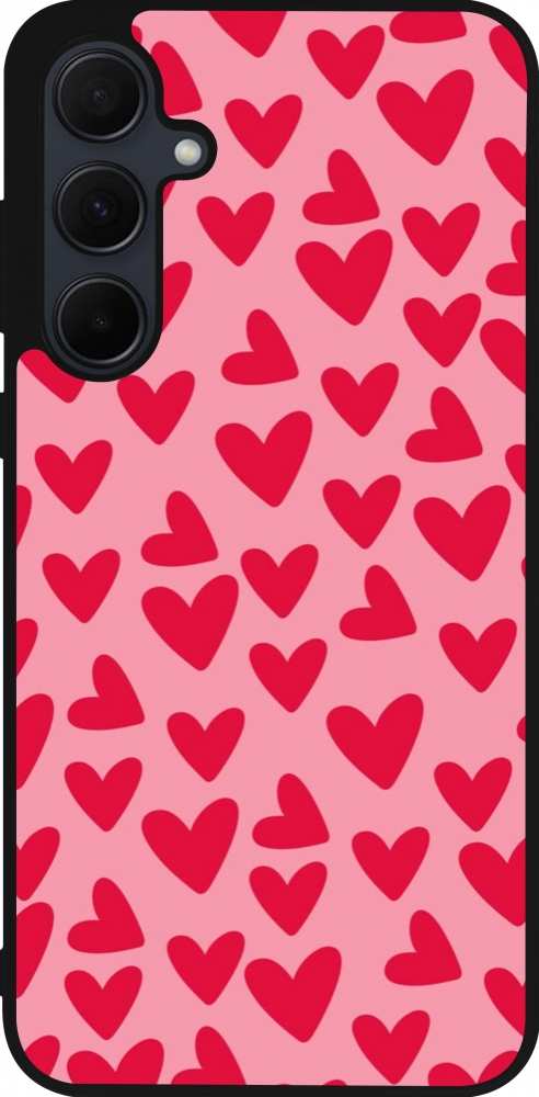 Coque Samsung Galaxy A56 - Silicone rigide noir Mom 2024 petits coeurs