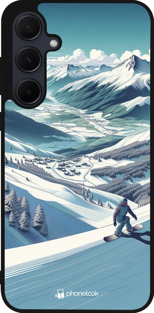 Coque Samsung Galaxy A56 - Silicone rigide noir Snowboarder Montagne