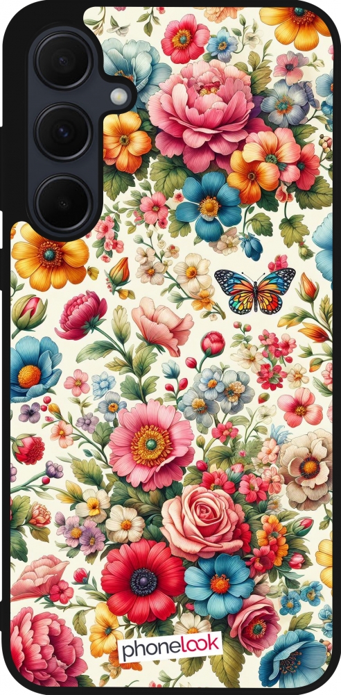 Coque Samsung Galaxy A56 - Silicone rigide noir Spring 25 printemps fleuri