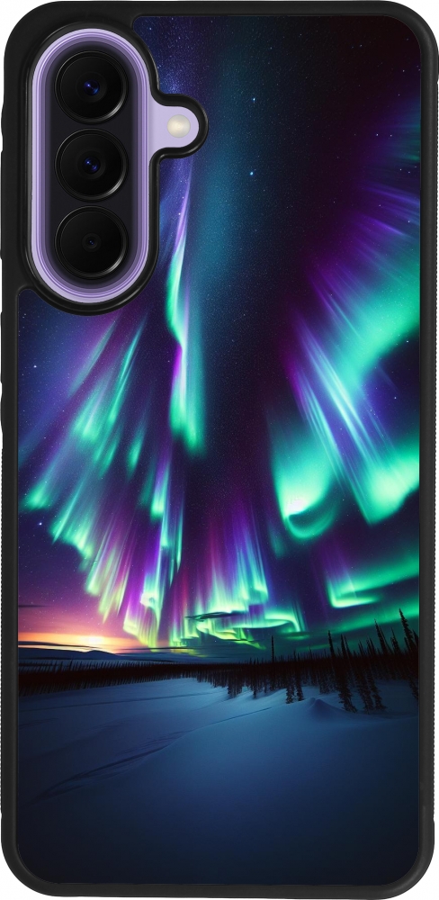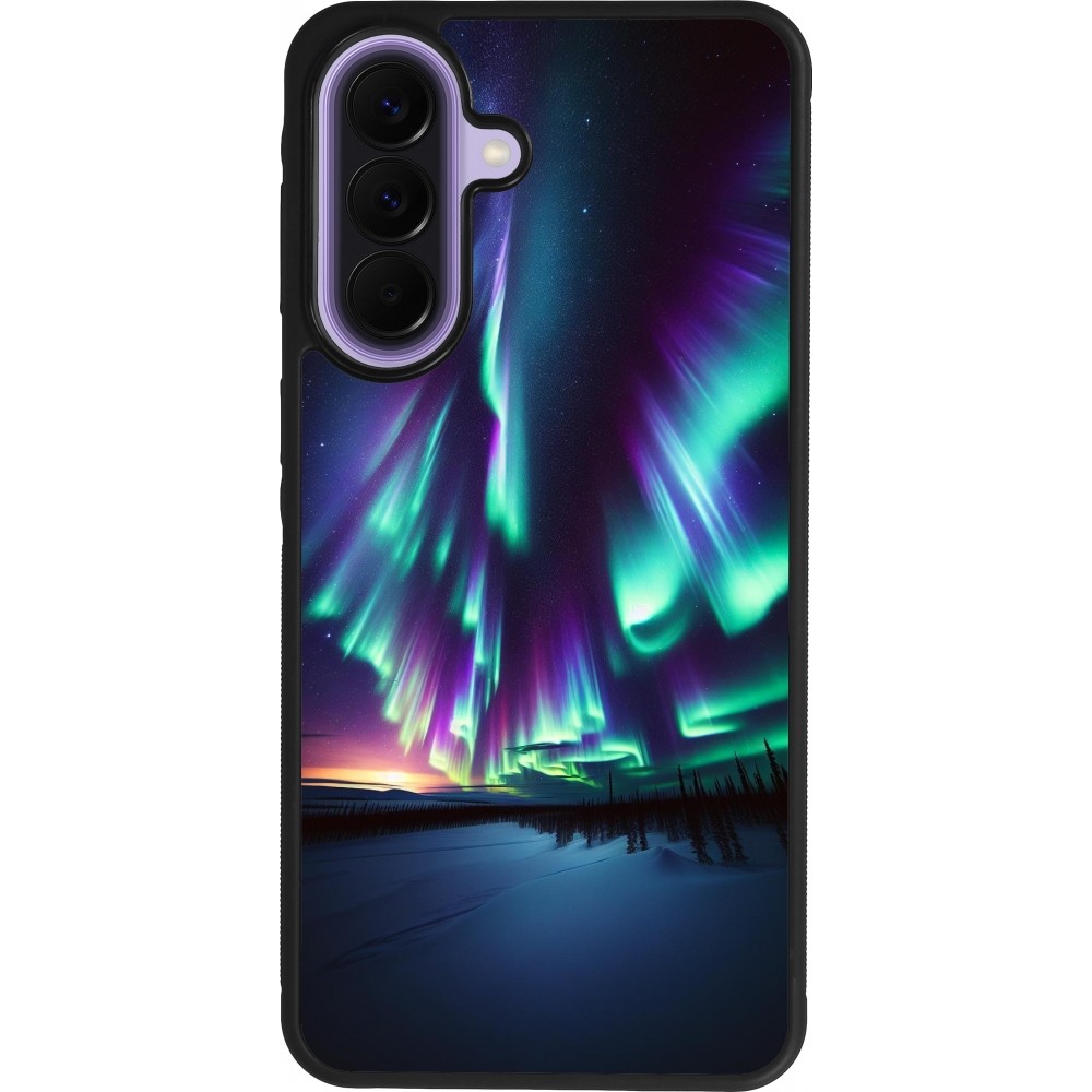 Coque Samsung Galaxy A57 5G - Silicone rigide noir Aurore Boréale Étincelante