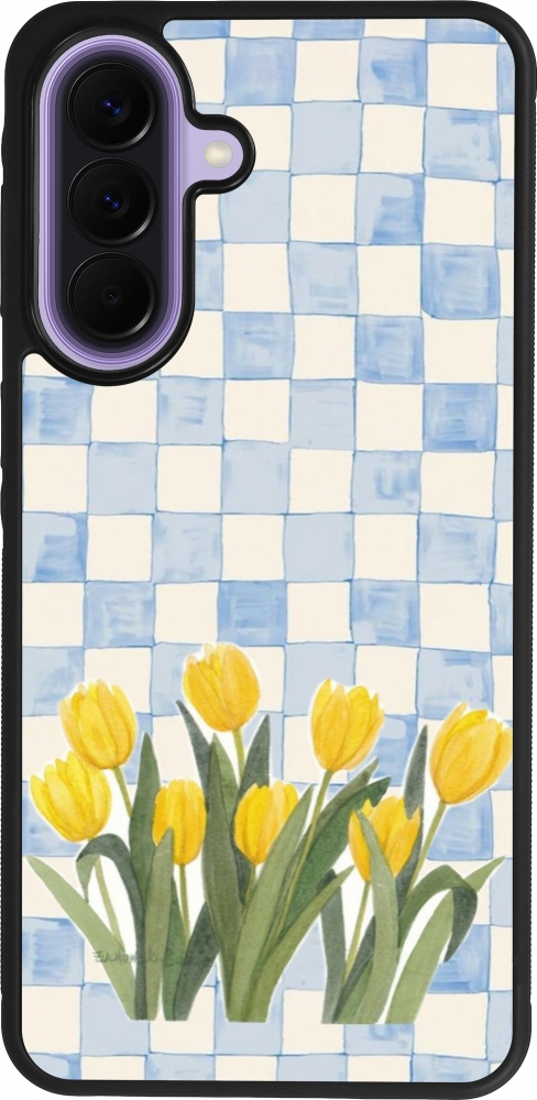 Coque Samsung Galaxy A57 5G - Silicone rigide noir Blue vichy tulips Spring 2026