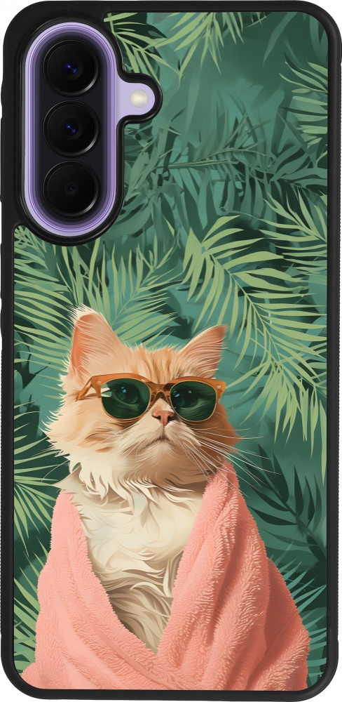 Coque Samsung Galaxy A57 5G - Silicone rigide noir Cat Summer Palms