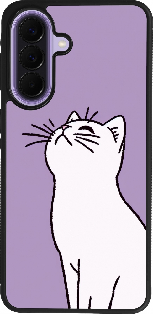 Coque Samsung Galaxy A57 5G - Silicone rigide noir Chat sur fond violet