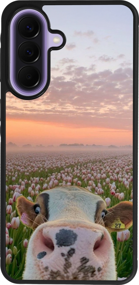 Coque Samsung Galaxy A57 5G - Silicone rigide noir Cow with tulips Spring 2026