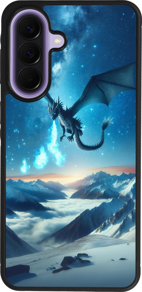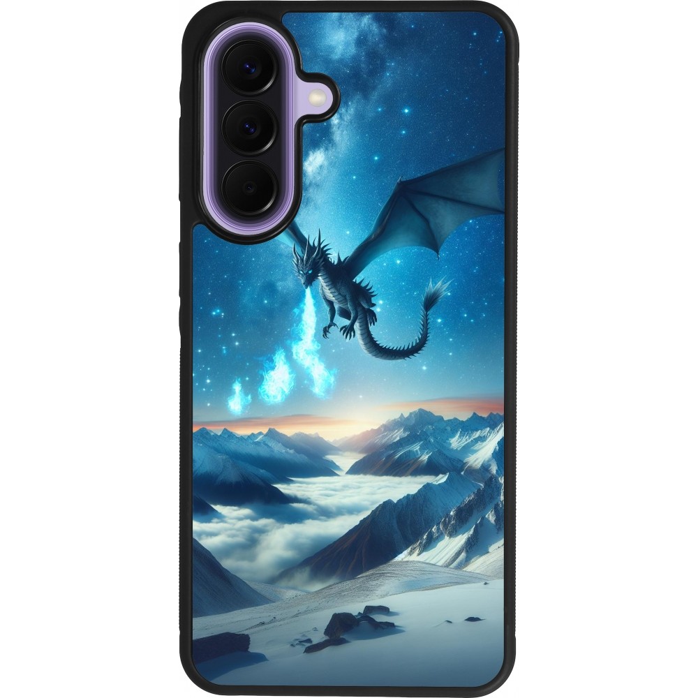 Coque Samsung Galaxy A57 5G - Silicone rigide noir Dragon nocturne montagne