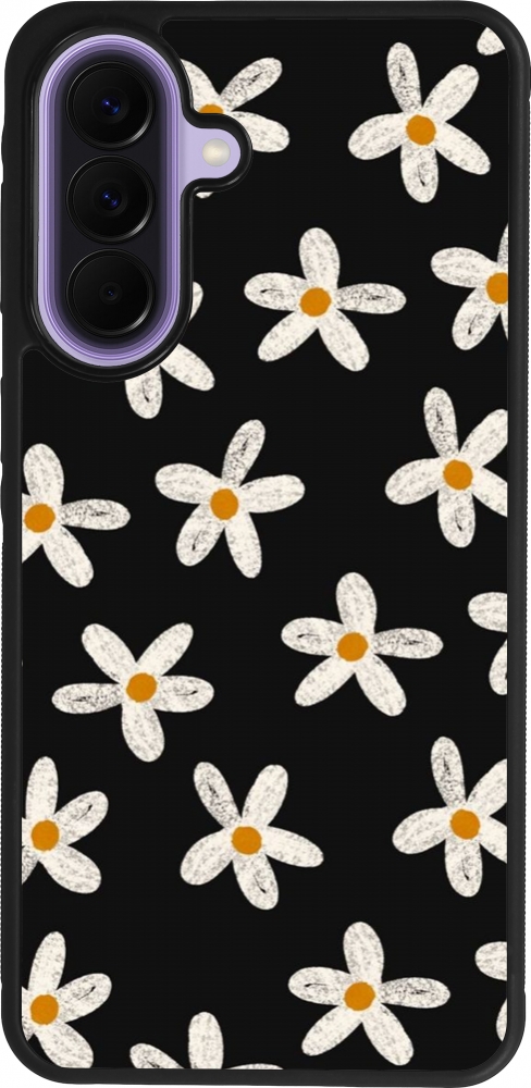 Coque Samsung Galaxy A57 5G - Silicone rigide noir Easter 2024 white on black flower