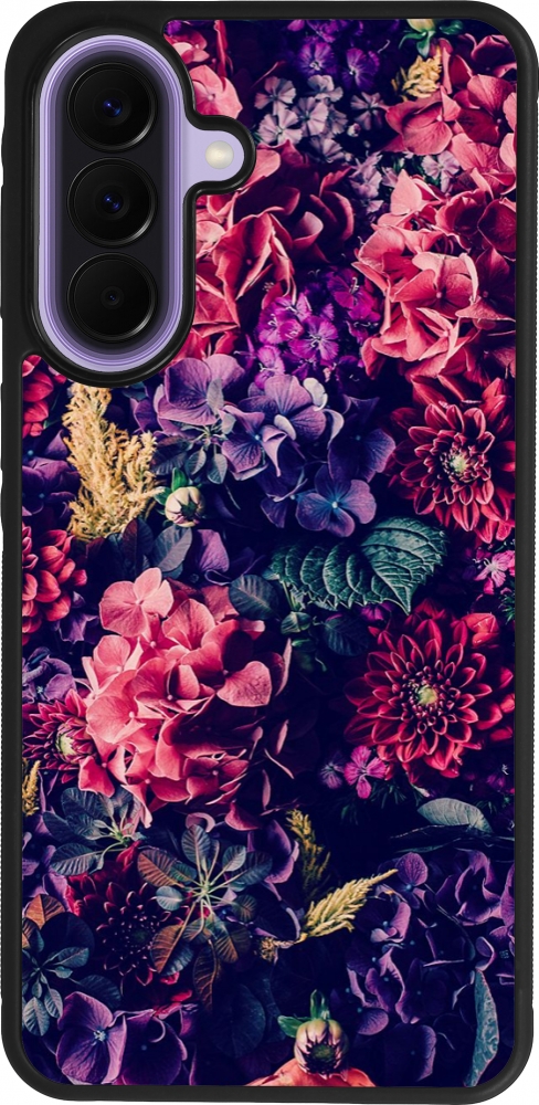 Coque Samsung Galaxy A57 5G - Silicone rigide noir Flowers Dark