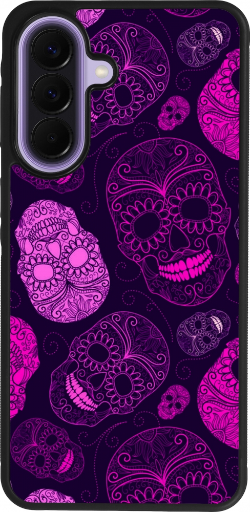 Coque Samsung Galaxy A57 5G - Silicone rigide noir Halloween 2023 pink skulls