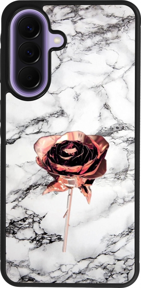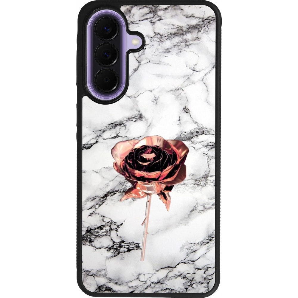 Coque Samsung Galaxy A57 5G - Silicone rigide noir Marble Rose Gold