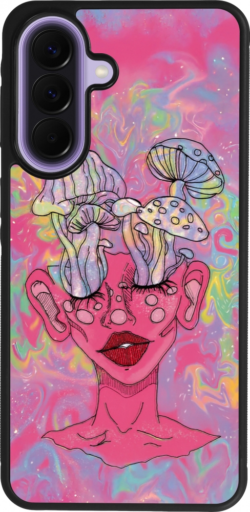 Coque Samsung Galaxy A57 5G - Silicone rigide noir Psychedelic pink mushroom