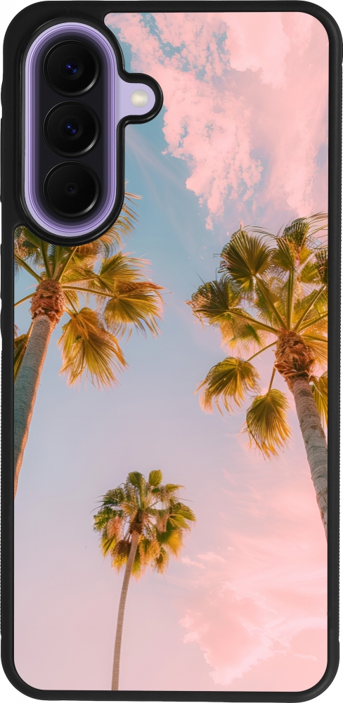 Coque Samsung Galaxy A57 5G - Silicone rigide noir Summer 2025 Palmiers
