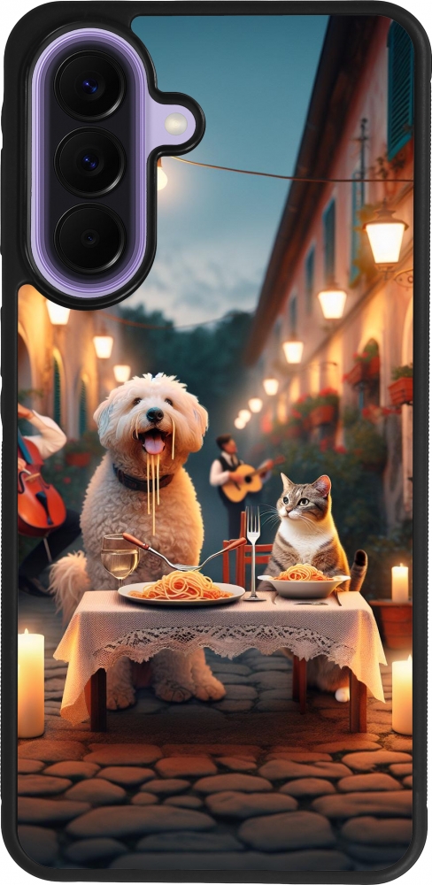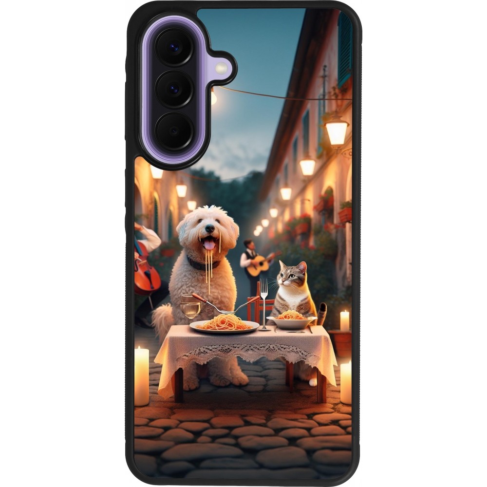 Coque Samsung Galaxy A57 5G - Silicone rigide noir Valentine 2024 Dog & Cat Candlelight