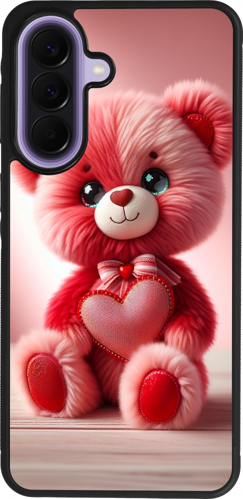 Coque Samsung Galaxy A57 5G - Silicone rigide noir Valentine 2024 Ourson rose