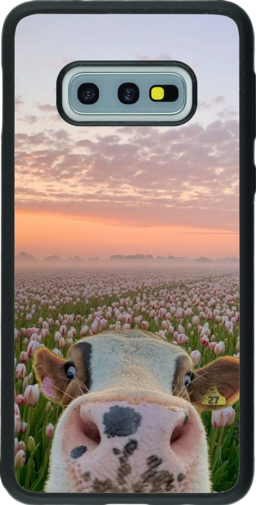Coque Samsung Galaxy S10e - Silicone rigide noir Cow with tulips Spring 2026