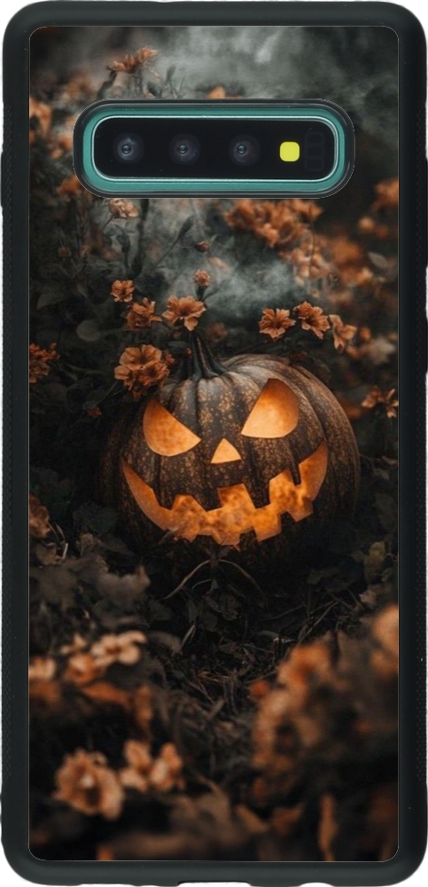 Coque Samsung Galaxy S10+ - Silicone rigide noir Halloween 2025 Pumpkin with flowers