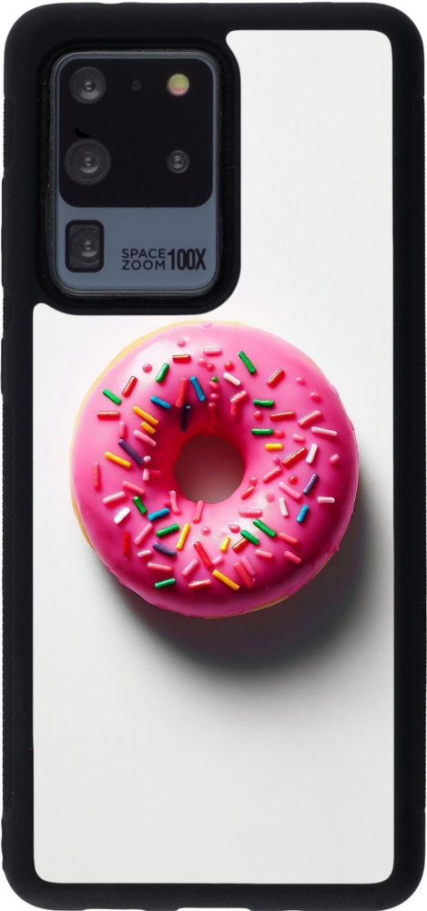 Coque Samsung Galaxy S20 Ultra - Silicone rigide noir Weißer Hintergrund, pinker Donut