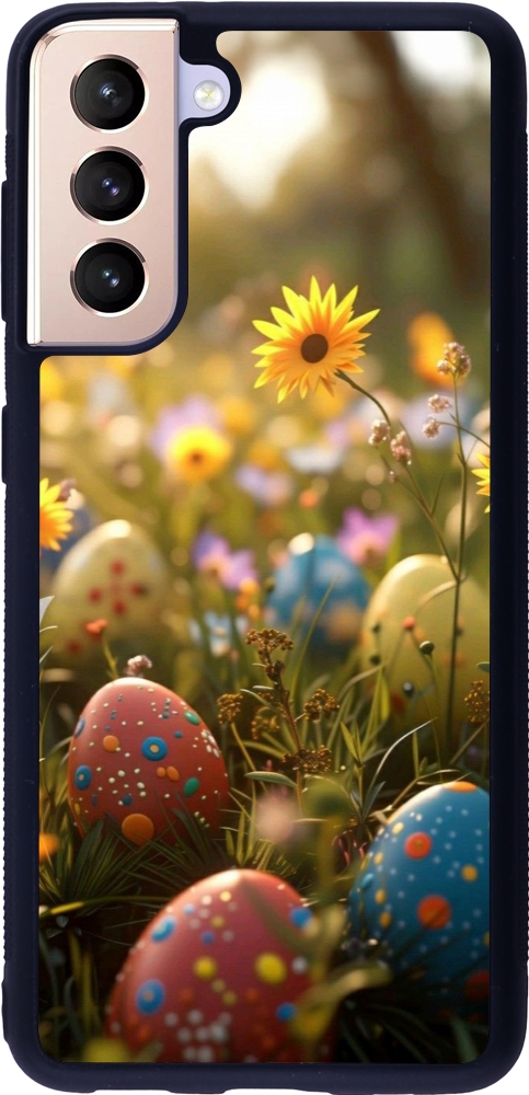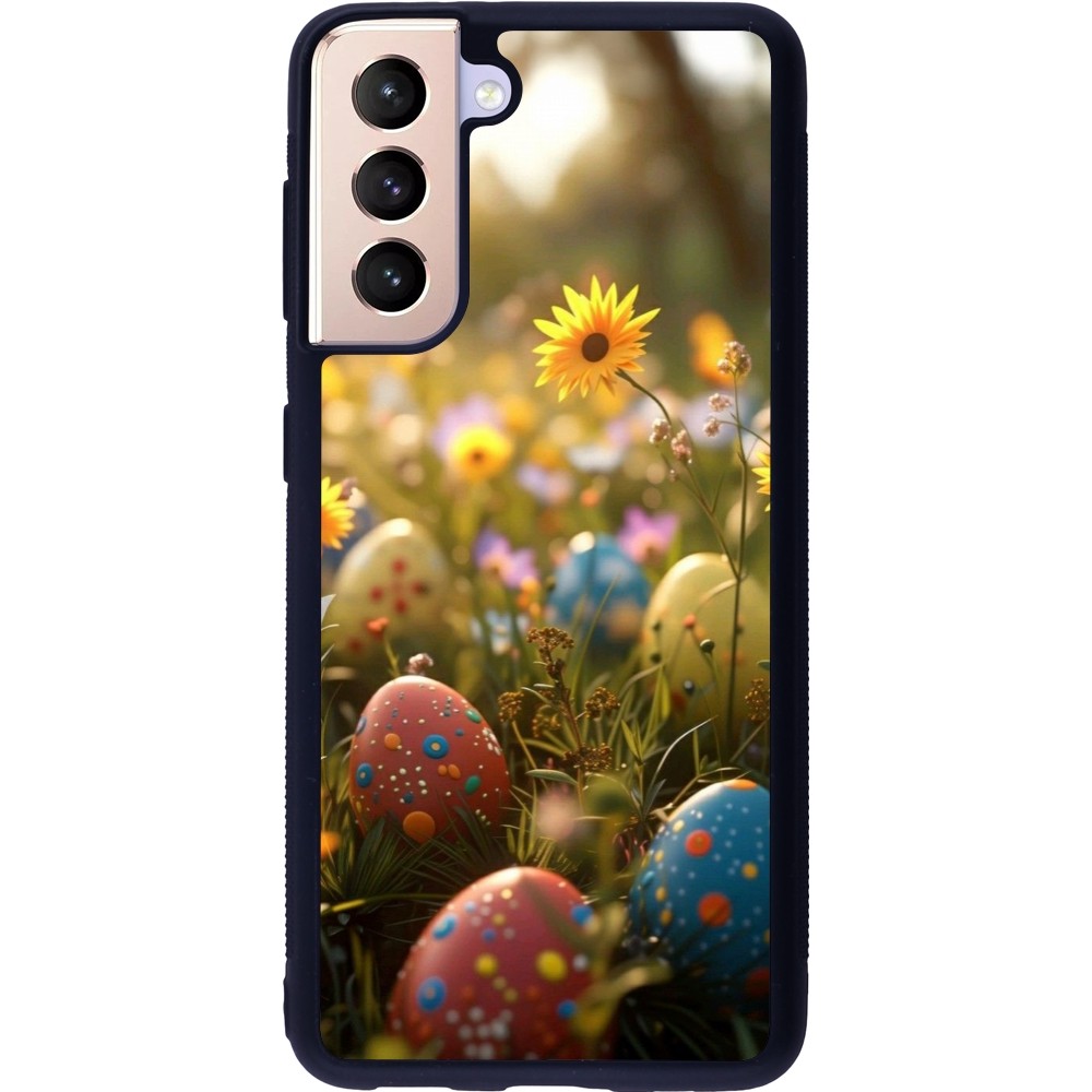 Coque Samsung Galaxy S21 5G - Silicone rigide noir Easter 2026 Decorated eggs
