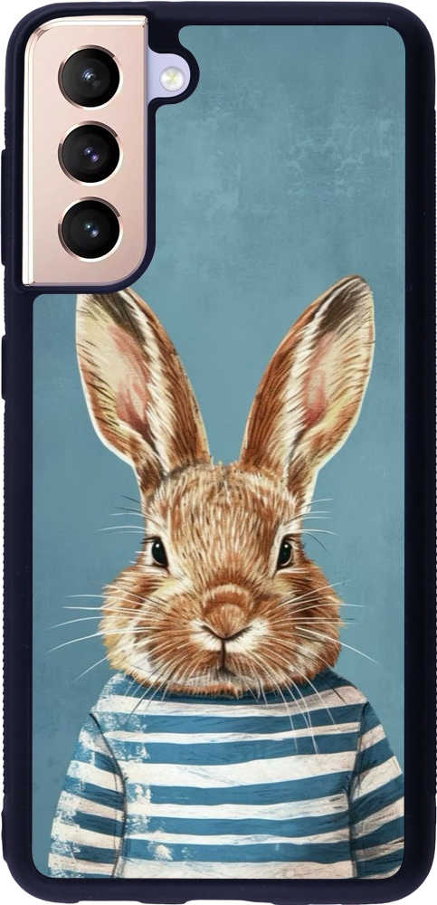 Coque Samsung Galaxy S21 5G - Silicone rigide noir Easter 2026 Rabbit navy