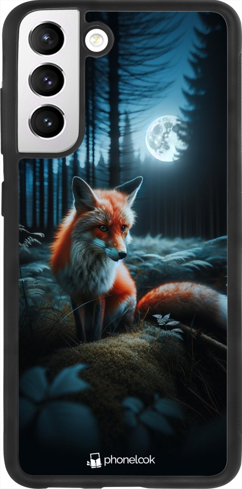 Coque Samsung Galaxy S21 FE 5G - Silicone rigide noir Renard lune forêt