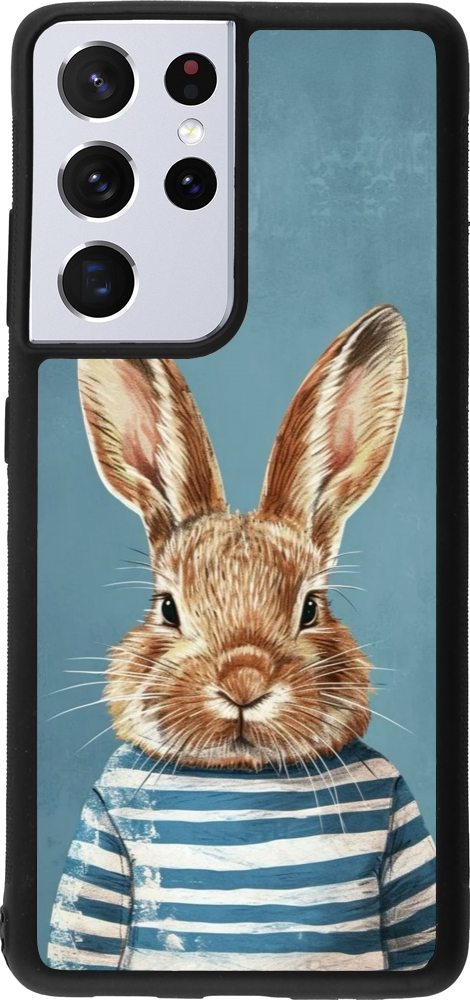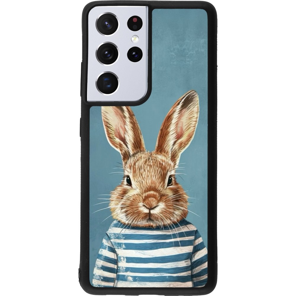 Coque Samsung Galaxy S21 Ultra 5G - Silicone rigide noir Easter 2026 Rabbit navy