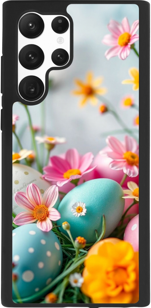 Coque Samsung Galaxy S22 Ultra - Silicone rigide noir Easter 2026 Eggs with flowers