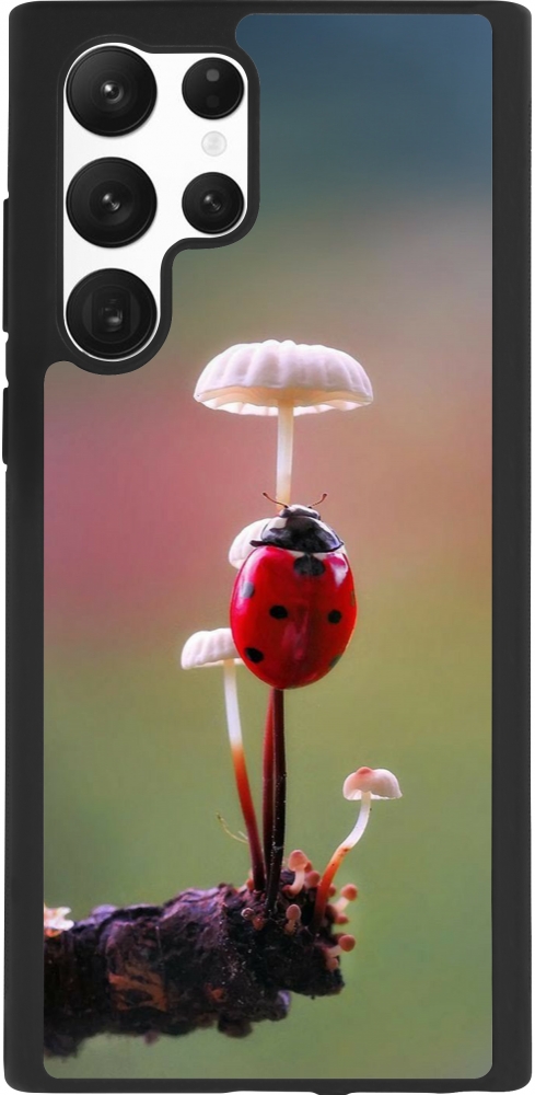 Coque Samsung Galaxy S22 Ultra - Silicone rigide noir Ladybird on a mushroom Spring 2026