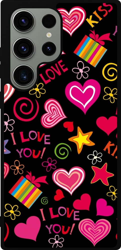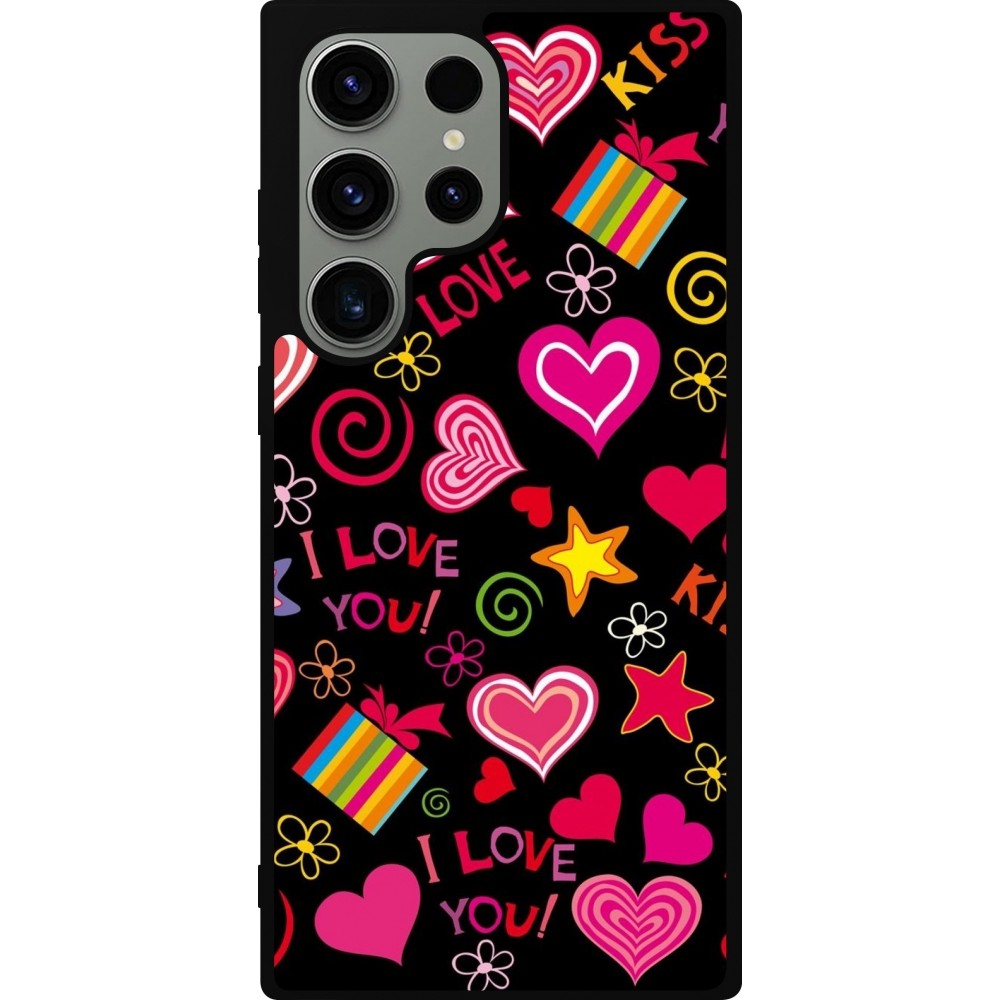 Coque Samsung Galaxy S23 Ultra - Silicone rigide noir Valentine 2023 love symbols