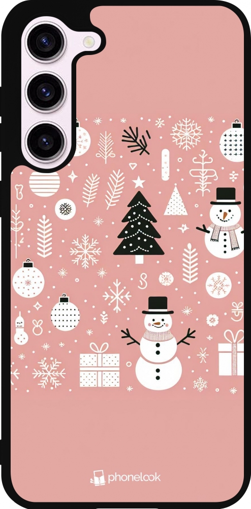 Coque Samsung Galaxy S23+ - Silicone rigide noir Noël 2024 Rose Snowman Christmas