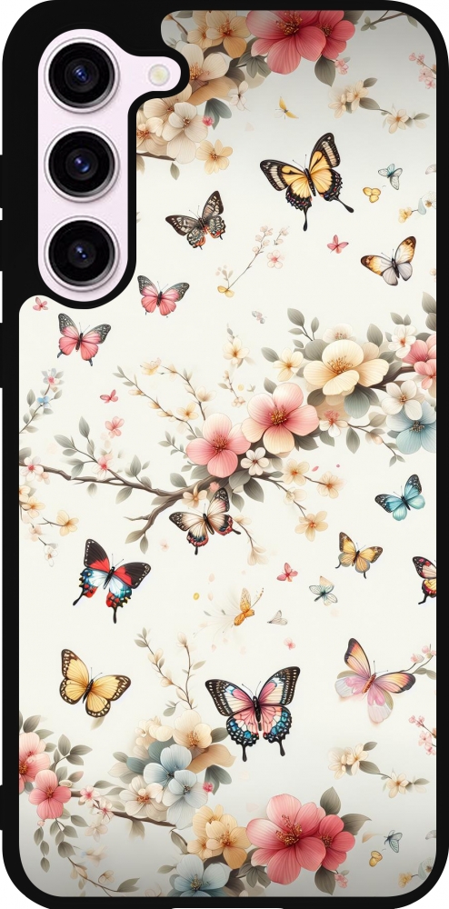 Coque Samsung Galaxy S23+ - Silicone rigide noir Spring 25 Papillons Légers