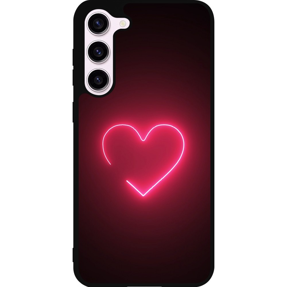 Coque Samsung Galaxy S23+ - Silicone rigide noir Valentine 2023 single neon heart