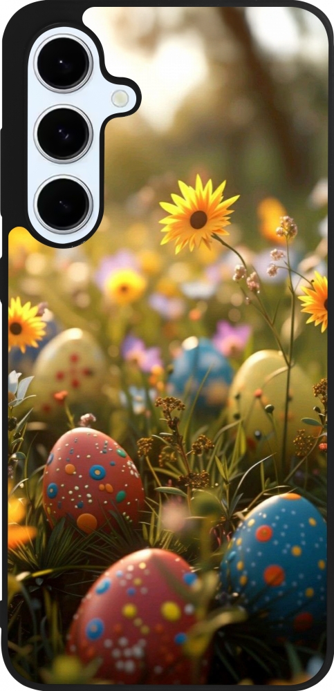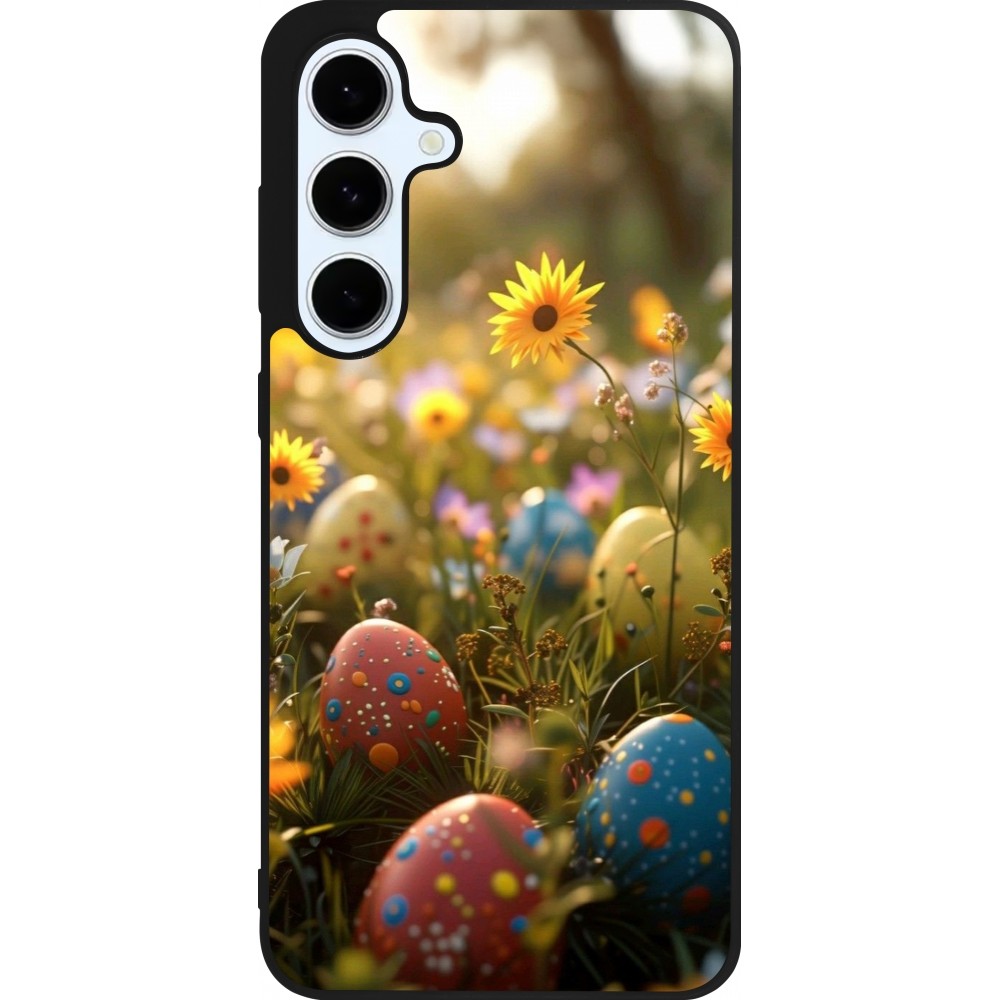 Coque Samsung Galaxy S24 FE - Silicone rigide noir Easter 2026 Decorated eggs