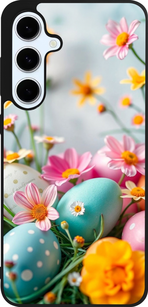 Coque Samsung Galaxy S24 FE - Silicone rigide noir Easter 2026 Eggs with flowers