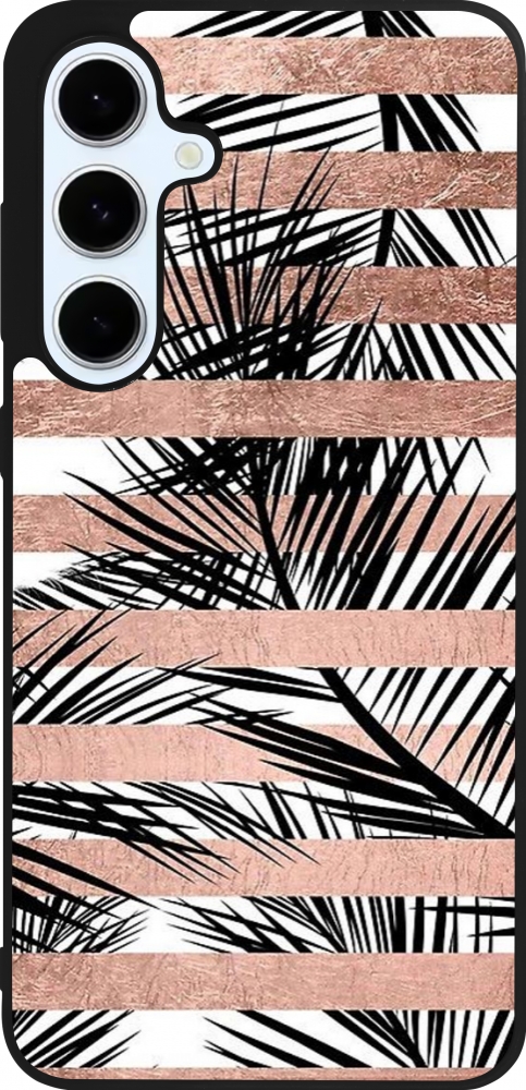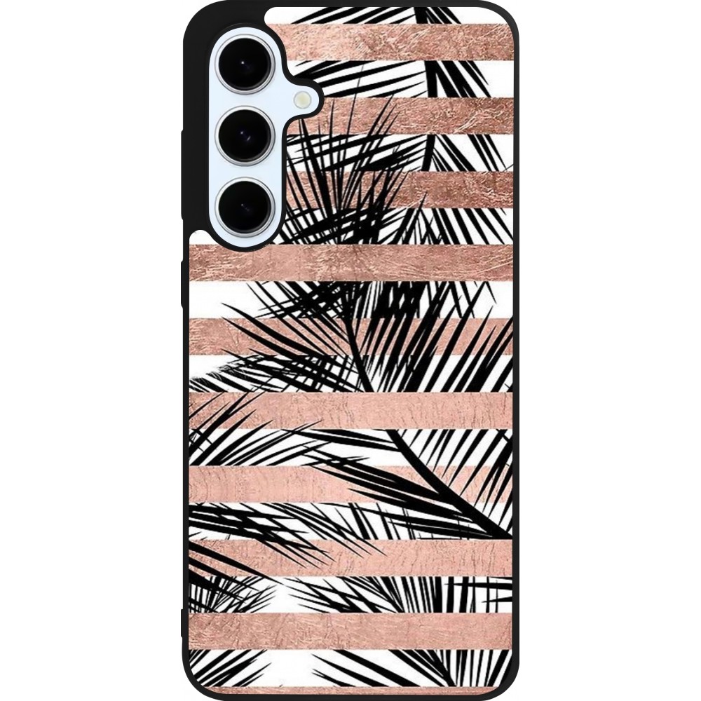 Coque Samsung Galaxy S24 FE - Silicone rigide noir Palm trees gold stripes