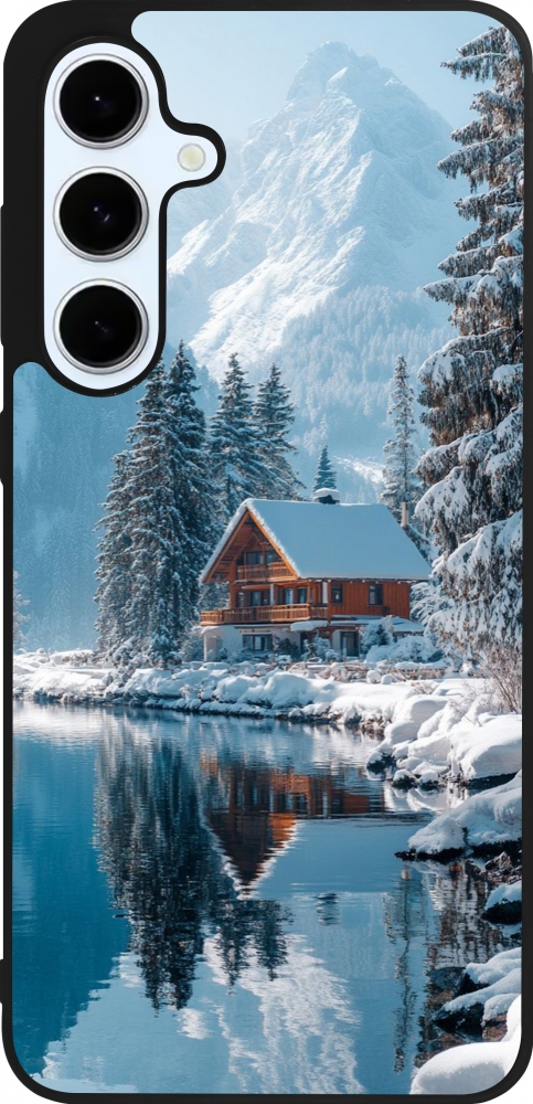 Coque Samsung Galaxy S24 FE - Silicone rigide noir Winter 25 Winter house forest day