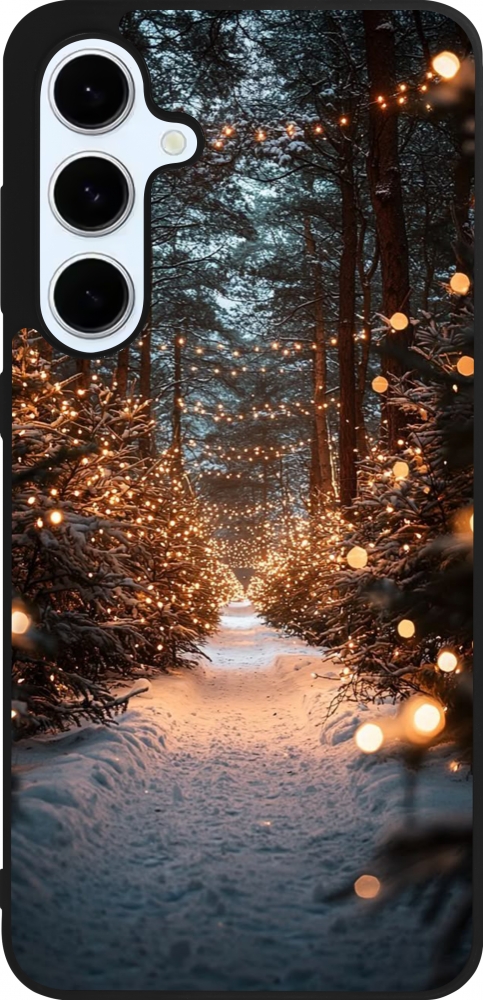 Coque Samsung Galaxy S24 FE - Silicone rigide noir Winter 25 Winter snowy road