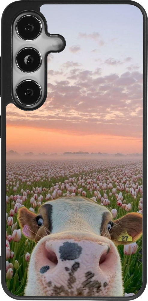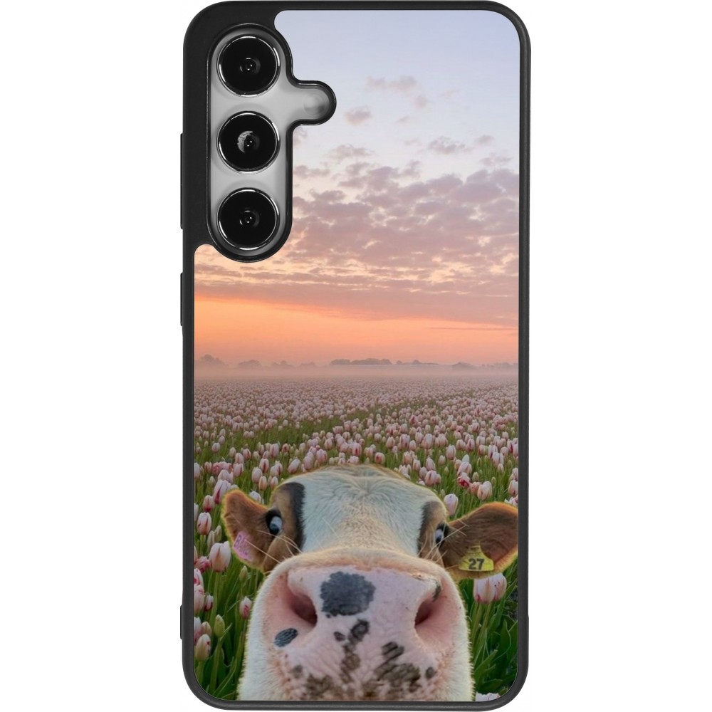 Coque Samsung Galaxy S24 - Silicone rigide noir Cow with tulips 2026