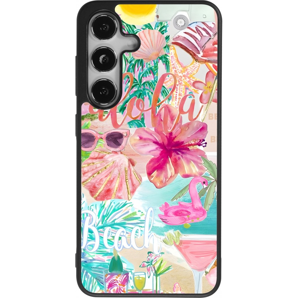 Coque Samsung Galaxy S24 - Silicone rigide noir Preppy Collage Aloha