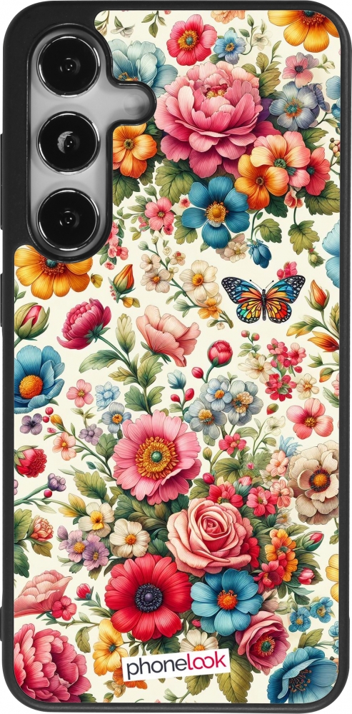 Coque Samsung Galaxy S24 - Silicone rigide noir Spring 25 printemps fleuri