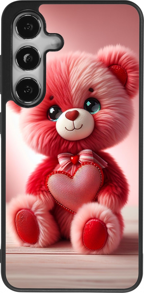 Coque Samsung Galaxy S24 - Silicone rigide noir Valentine 2024 Ourson rose