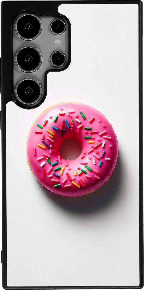 Coque Samsung Galaxy S24 Ultra - Silicone rigide noir Weißer Hintergrund, pinker Donut