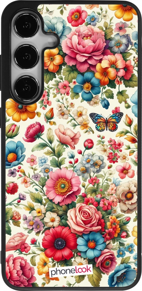 Coque Samsung Galaxy S24+ - Silicone rigide noir Spring 25 printemps fleuri