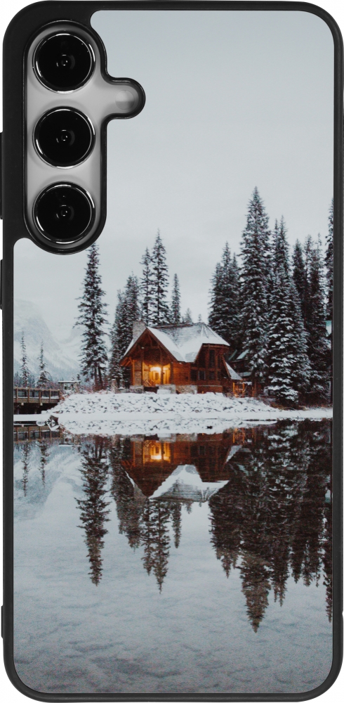 Coque Samsung Galaxy S24+ - Silicone rigide noir Winter 25 Winter house forest afternoon