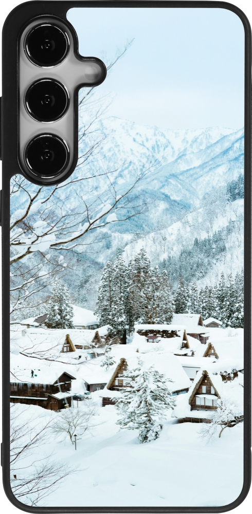 Coque Samsung Galaxy S24+ - Silicone rigide noir Winter 25 Winter snowy landscape