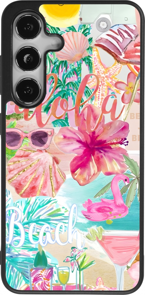 Coque Samsung Galaxy S25 - Silicone rigide noir Preppy Collage Aloha