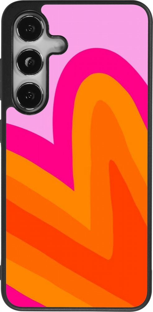 Coque Samsung Galaxy S25 - Silicone rigide noir Valentine 2024 heart gradient