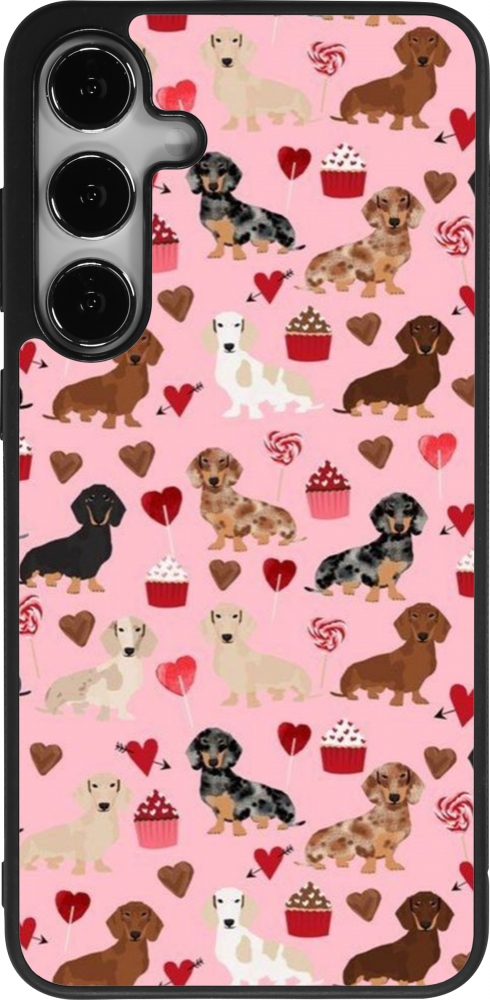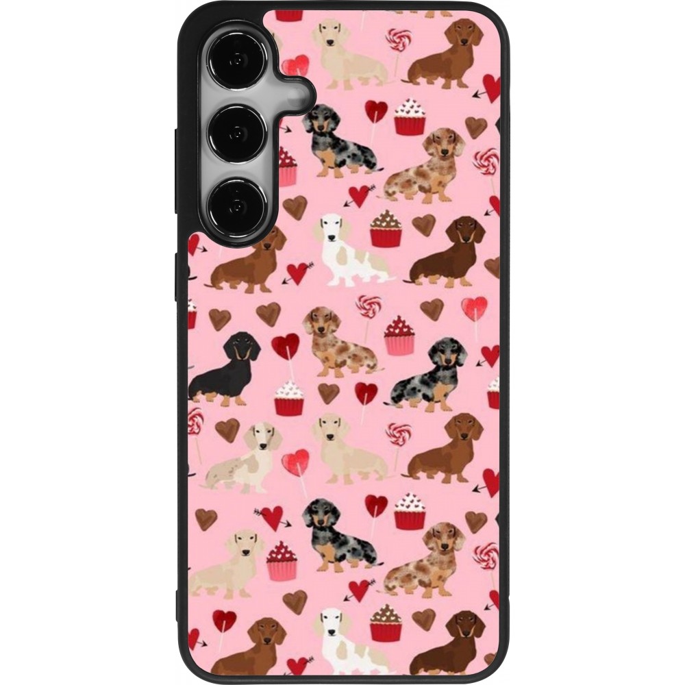 Coque Samsung Galaxy S25+ - Silicone rigide noir Valentine 2024 puppy love