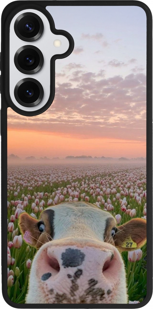 Coque Samsung Galaxy S26+ - Silicone rigide noir Cow with tulips Spring 2026