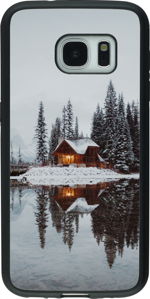 Coque Samsung Galaxy S7 - Silicone rigide noir Winter 25 Winter house forest afternoon